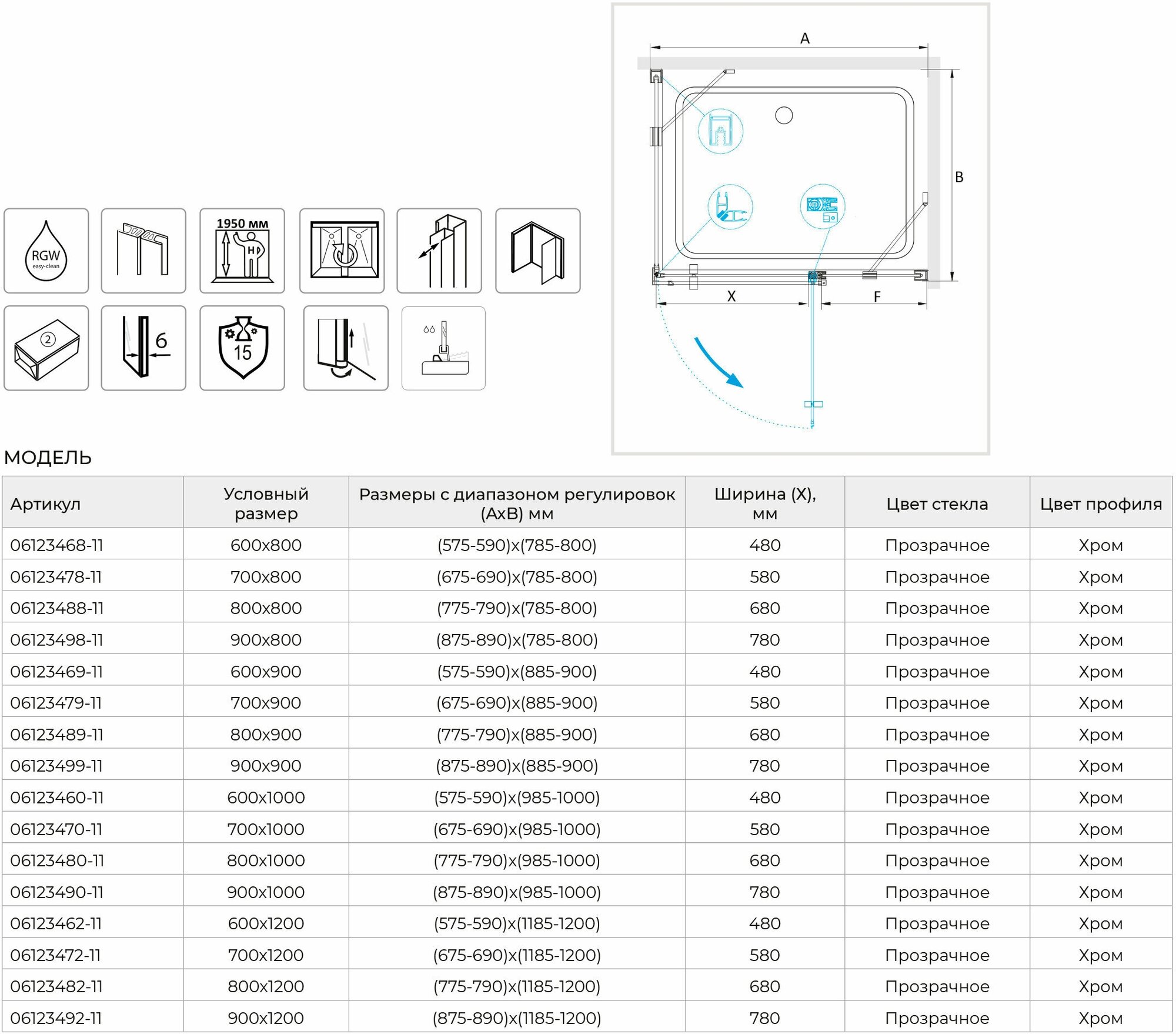 Душевой уголок RGW Leipzig LE-34 60х100х195 06123460-11 Хром интересное: