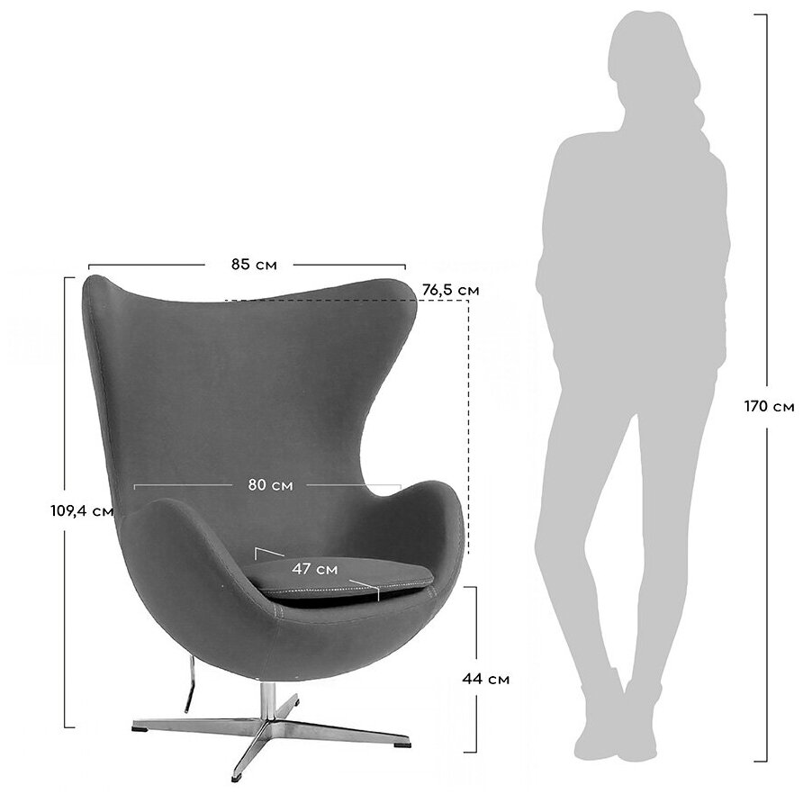 Кресло EGG CHAIR серый, искусственная замша / Кресло офисное / Кресло на дачу / Кресло руководителя / Удобное кресло