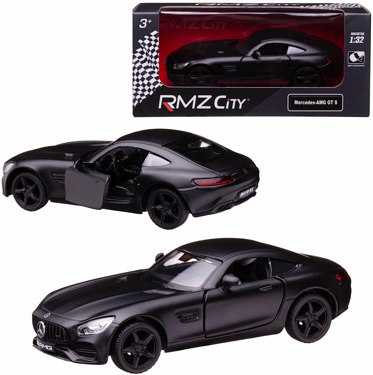 Машинка металлическая Uni-Fortune RMZ City серия 1:32 Mercedes-Benz GT S AMG 2018, инерционная, цвет черный матовый, двери открываются 554988M