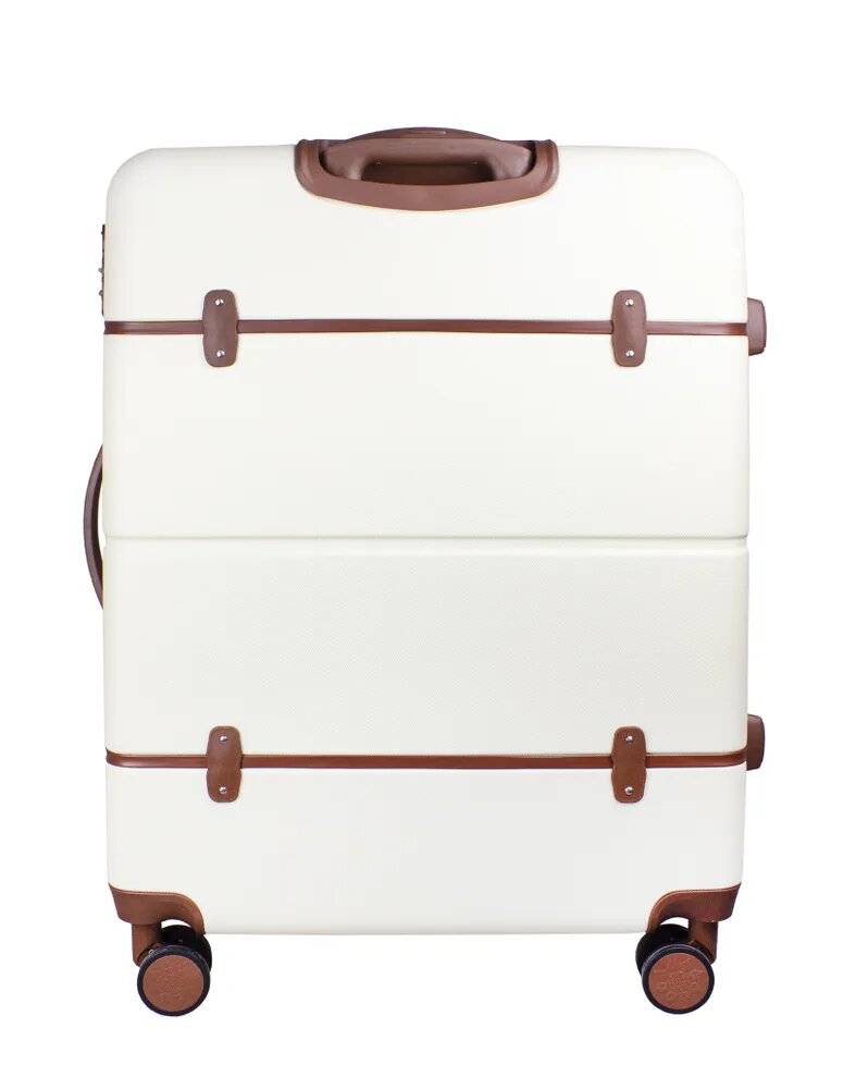Чемодан на колесах ручная кладь Tour Vintage малый S, с кожаными ремешками PROFFI TRAVEL PH10219, бежевый, белый