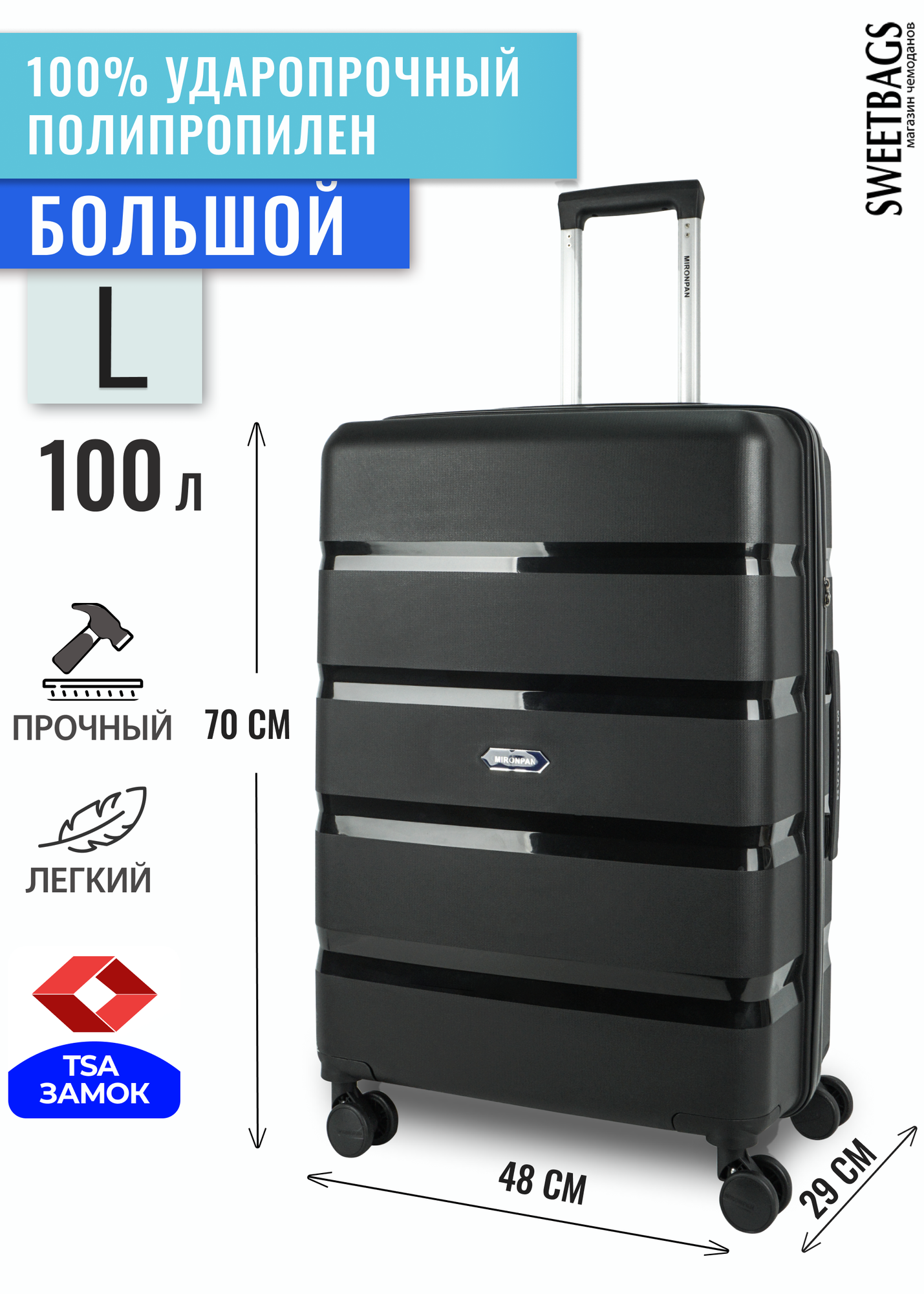 Купить Чемодан Sweetbags большой из полипропилена на 4-х колесах с TSA-замком (4 гориз. полосы) черный L-