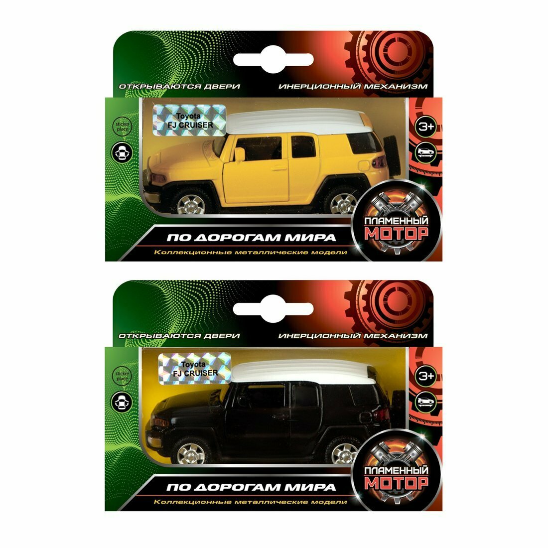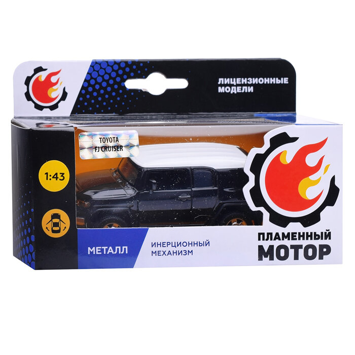 Машина мет. Пламенный мотор 1:43 Toyota FJ Cruiser, откр. двери, черный, 12см