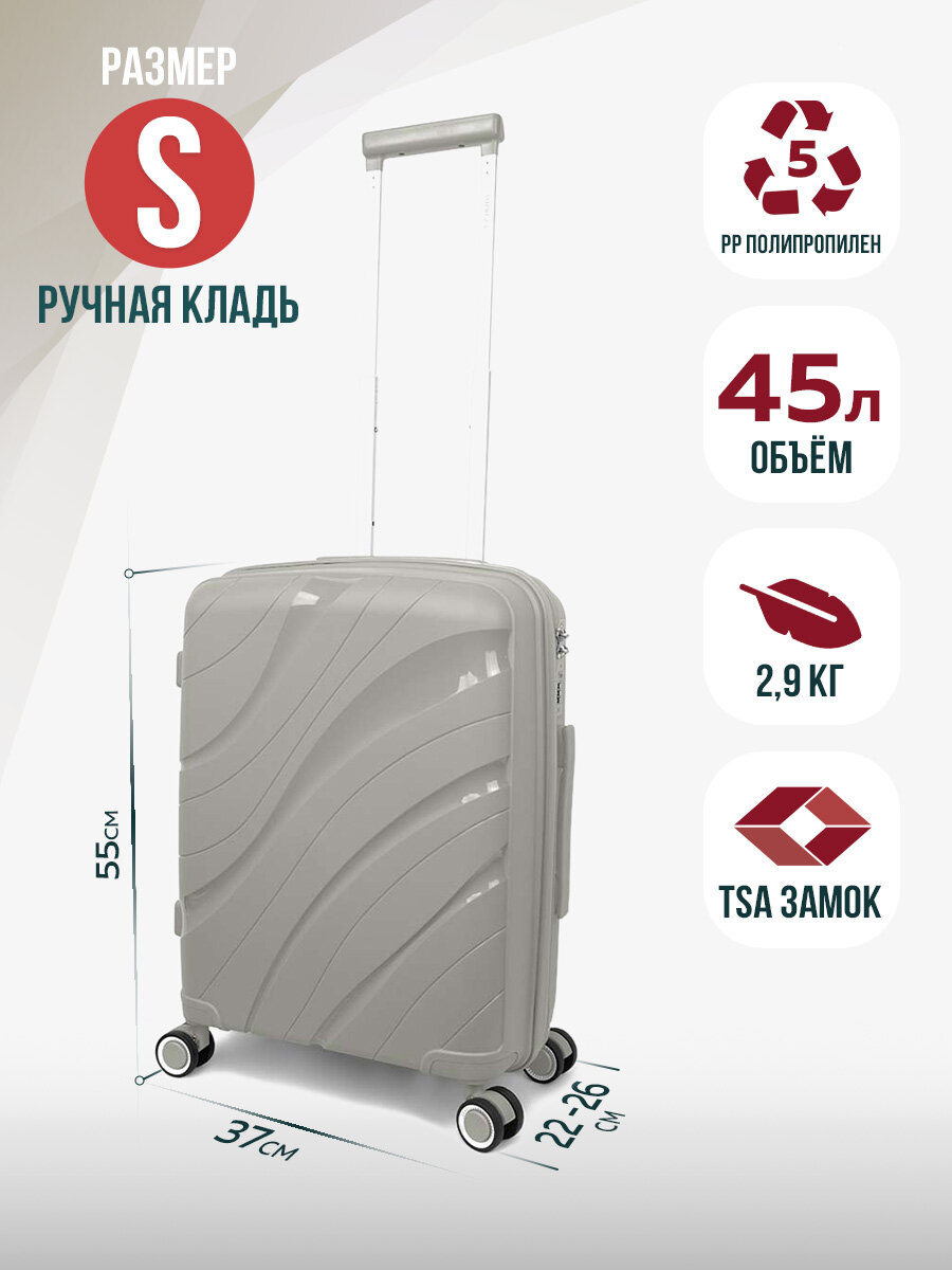 Ударопрочный чемодан из полипропилена с расширением размер 9002S-светло-серый