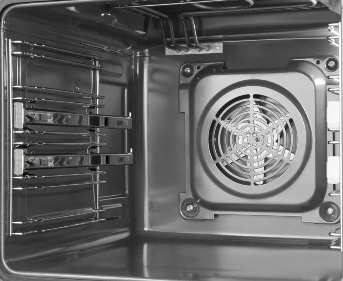 | Плюсы: | Трехслойное остекление, выдвижные направляющие для противня |