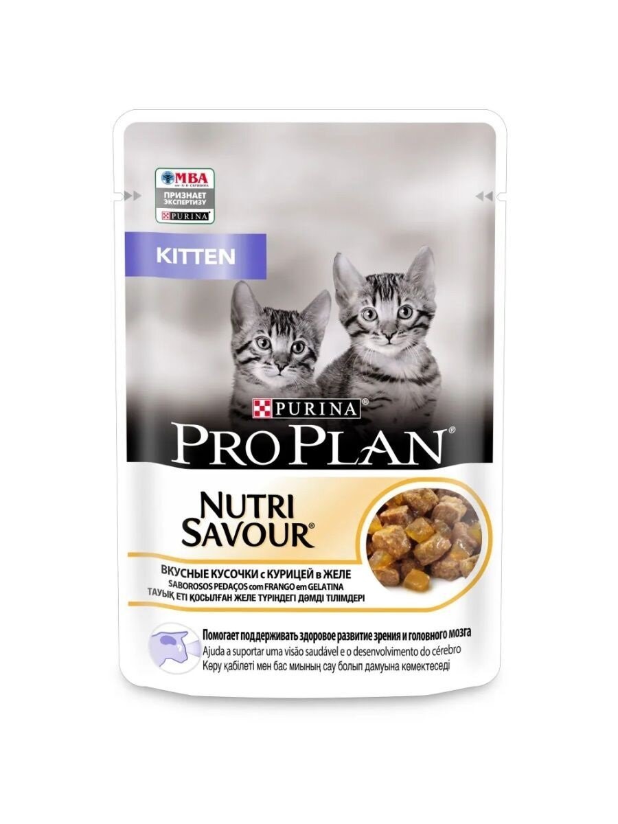 Влажный корм Pro Plan Nutri Savour для котят, кусочки с курицей в желе, пауч, 85 гр., 26 шт.