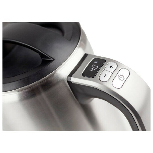 | Минусы: | Внутренняя металлическая часть не отполирована, такая же как и снаружи. Легкое появление пятен от воды на металле внешней стороны. Еле заметное свечение светодиода кнопки включения, приходится смотреть на него сверху, сбоку не заметно. На дне чайника торчит на 5мм термометр, что усложняет чистку. Слишком широкий нос чайника. Контакт чайника с базой не внушает доверия. Не понятно защищены ли кнопки и дисплей от брызг при наливании воды в чайник. |