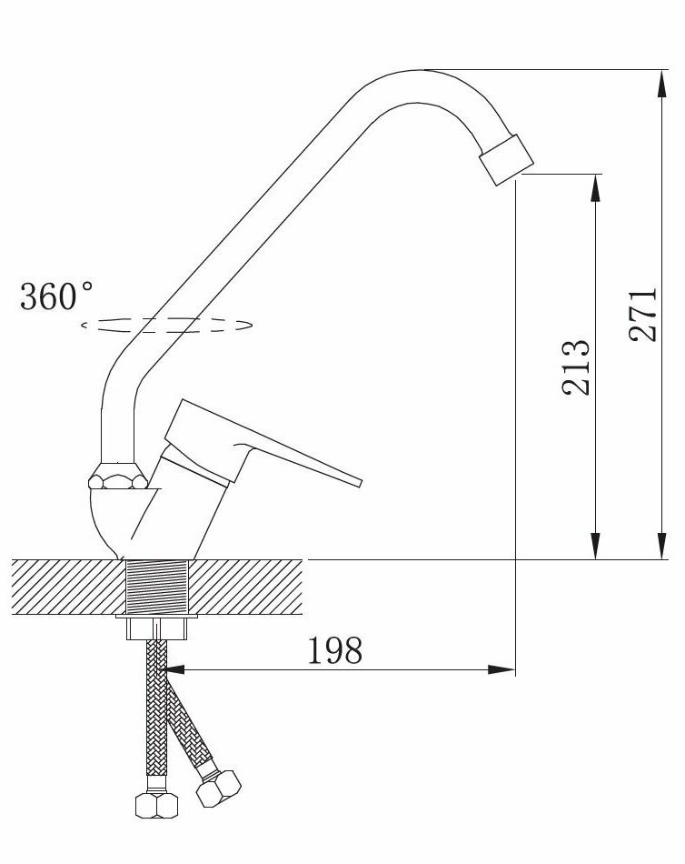 Смеситель для кухни Potato P51271 с высоким поворотным изливом, картридж 35 мм, хром, крепление гайка