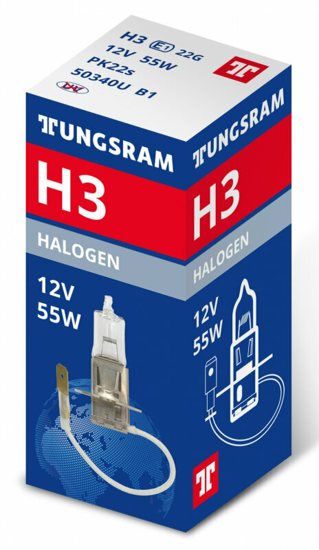 Лампа TUNGSRAM, H3, 12V, 55W, PK22S, 3200K
