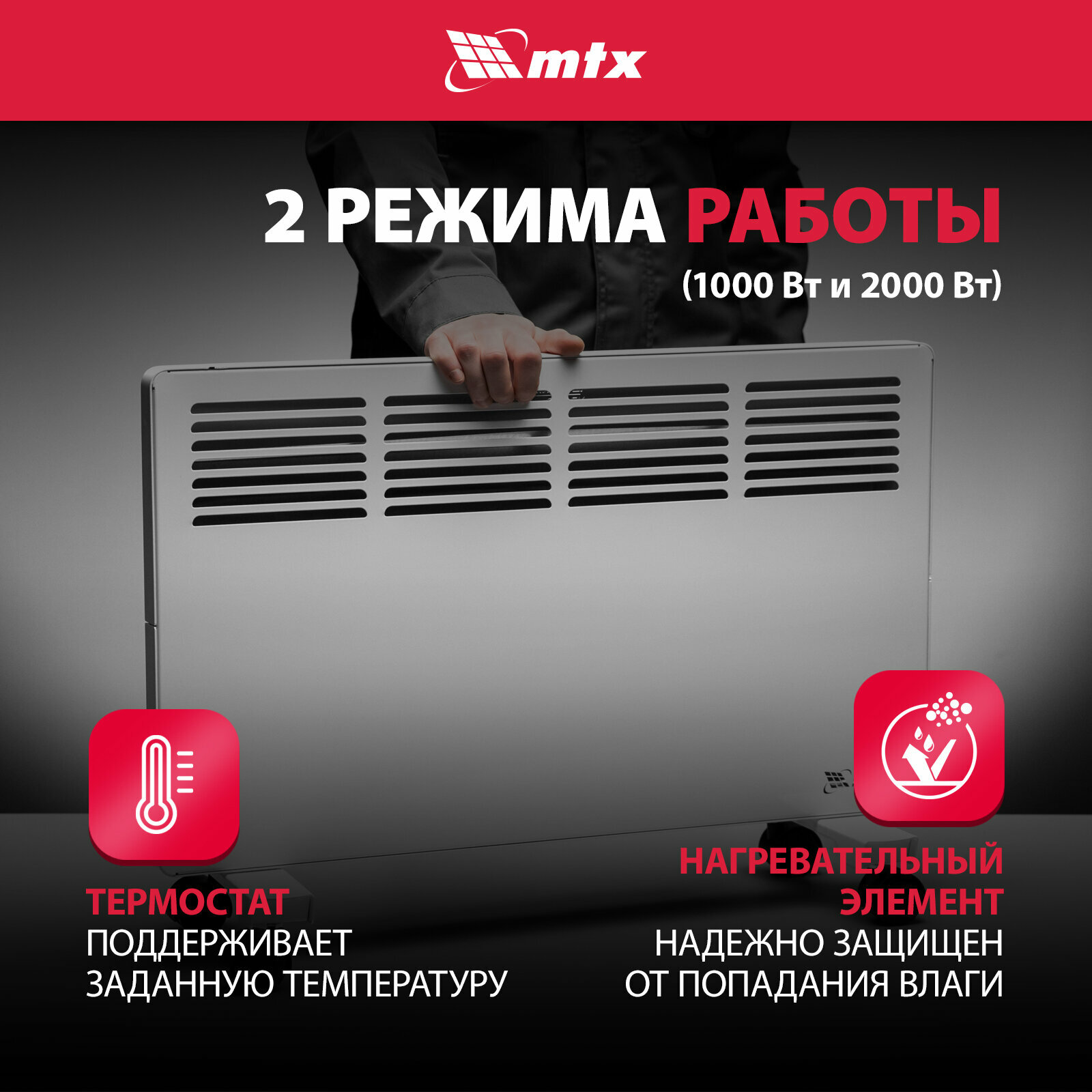 Конвектор электрический MTX КМ-2000.2 230 В, 2000 Вт, X-образный нагреватель, колеса, термостат 98126