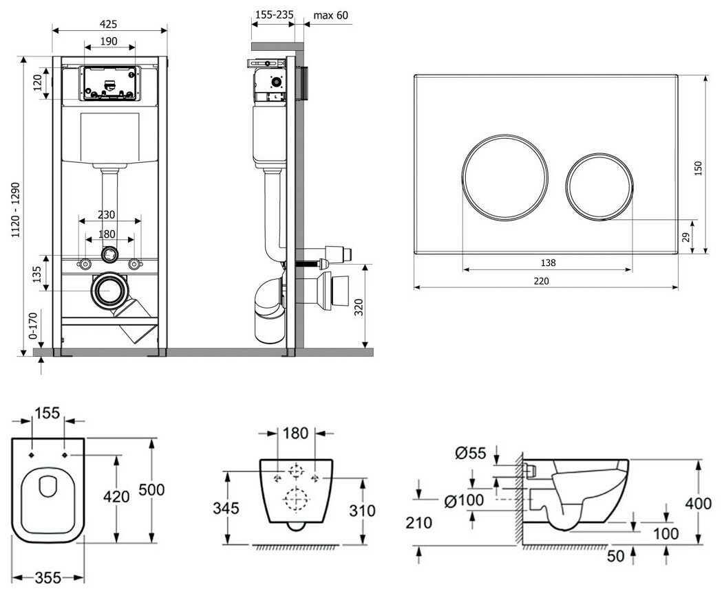 Подвесной унитаз комплект 6 в 1 Lavinia Boho One Rimless 75110116: унитаз, сиденье микролифт, инсталляция, кнопка, шумоизоляция