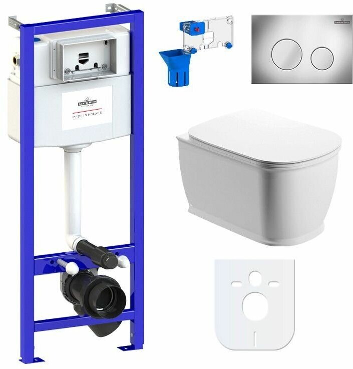Купить Подвесной унитаз комплект 7 в 1 Lavinia Boho Bell Pro Rimless 87040042: унитаз, сиденье микролифт, инсталляция, кнопка, шумоизоляция, диспенсер