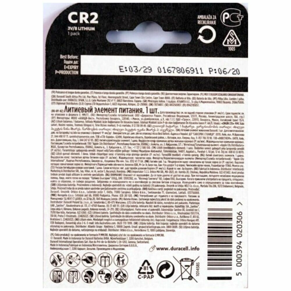 Duracell Батарейка литиевая CR2 Ultra 3V CR15H270 1 шт. блистер B0001378