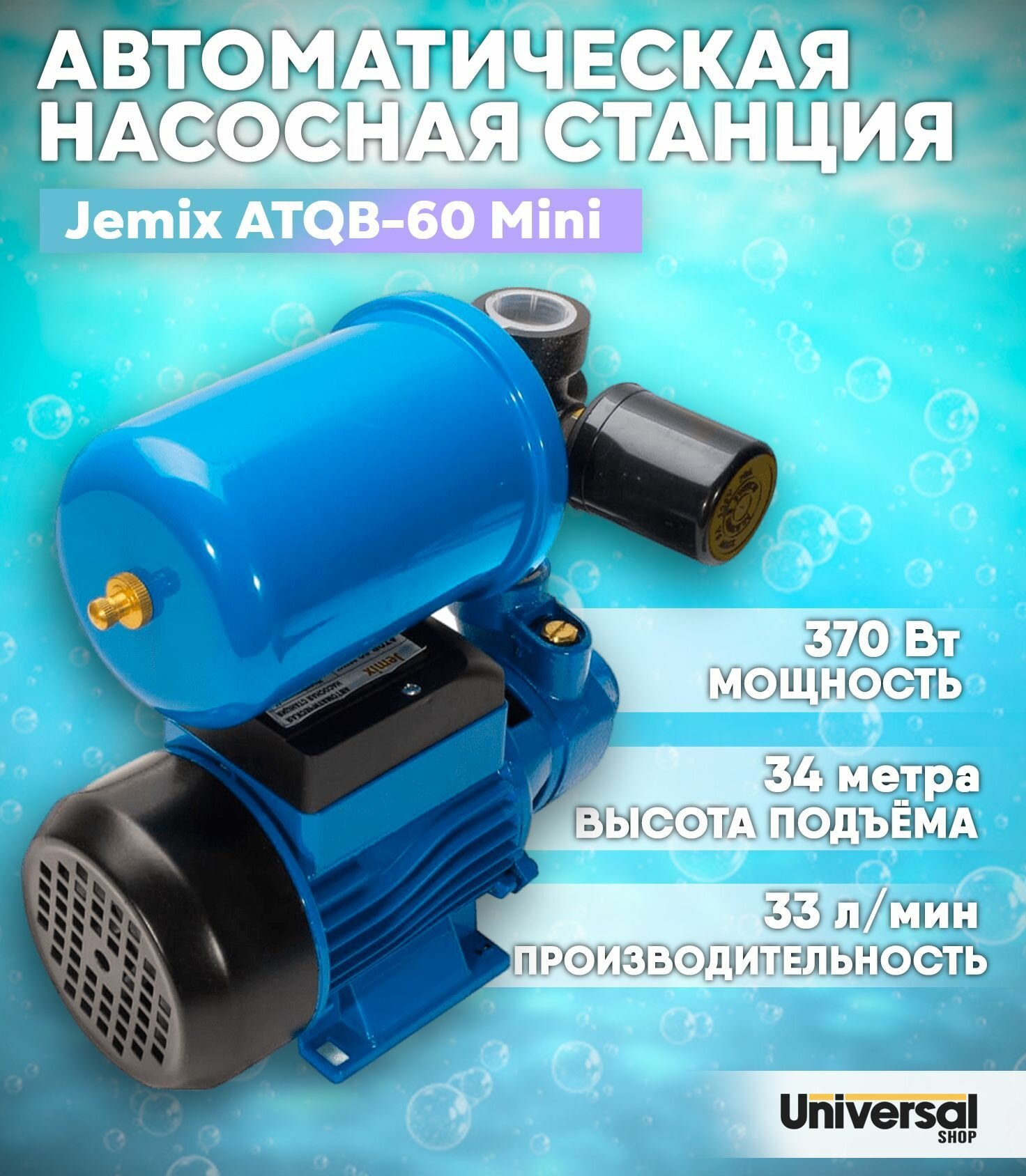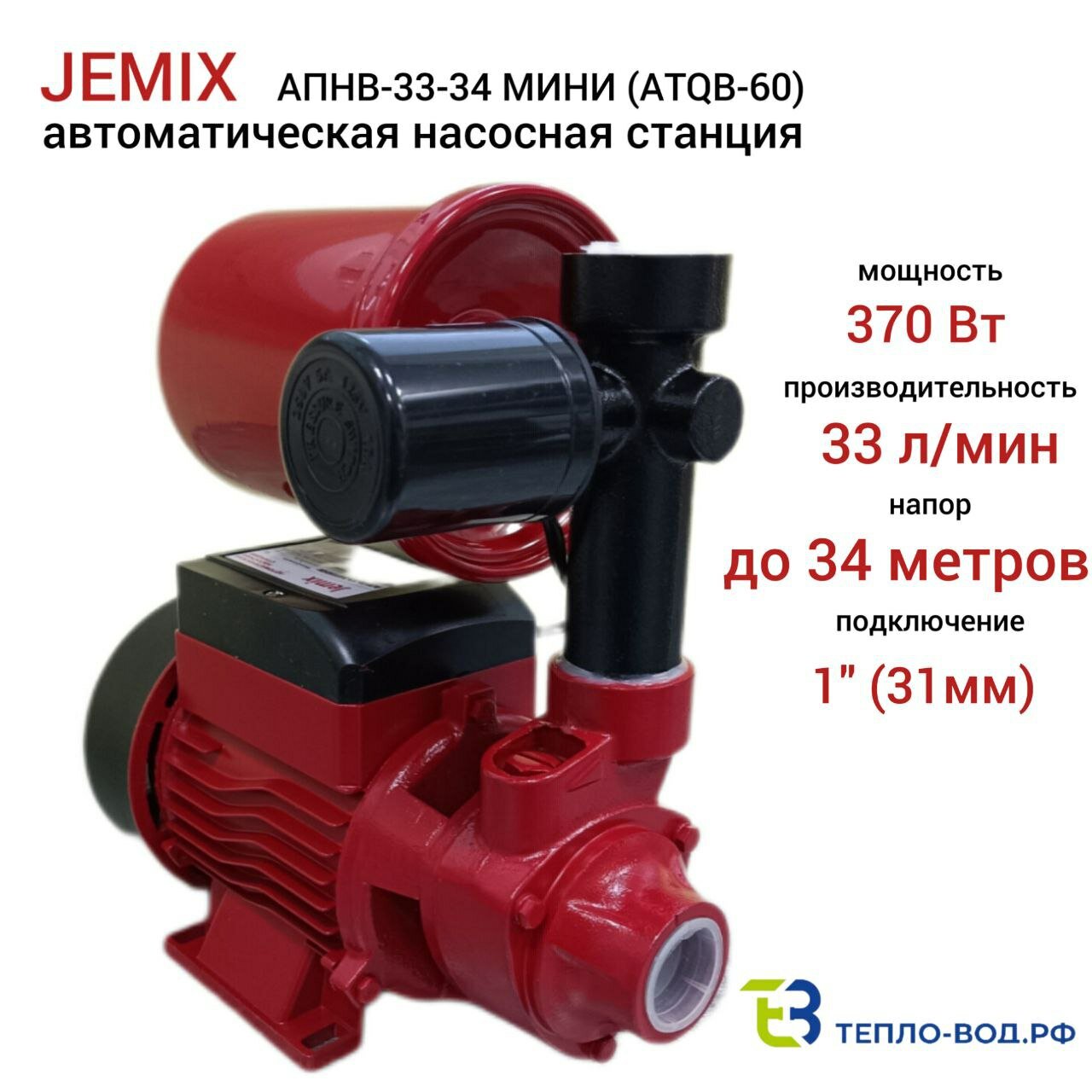 Насосная станция JEMIX ATQB-60 MINI, 370 Вт, напор 34 м, 33 л/мин, бак 2 л интересное: