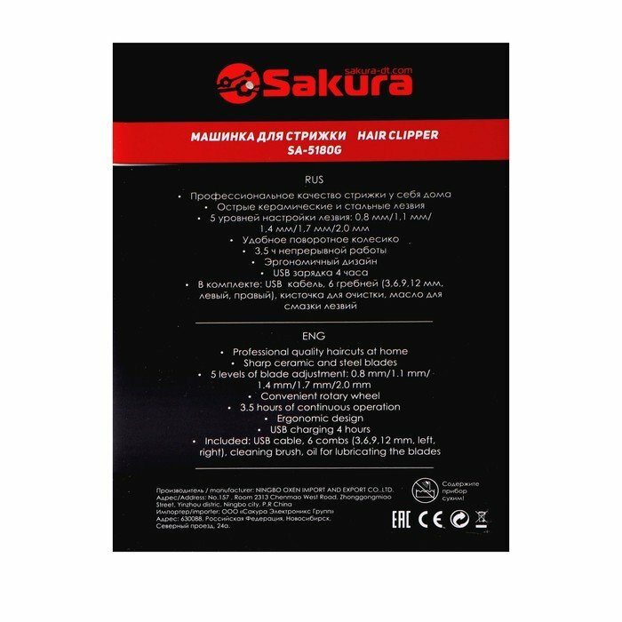 Машинка для стрижки SAKURA SA-5180G 3 Вт, 6 насадок, серебристый интересное: