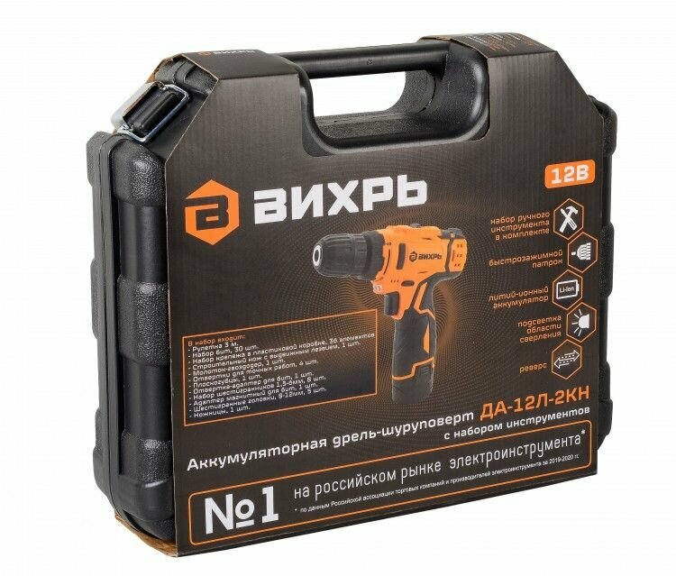 Купить Дрель-шуруповерт АКБ ДА-12Л-2КН 12В 1АКБ 2А*ч Li-Ion кейс Вихрь + набор инструментов 72/14/35