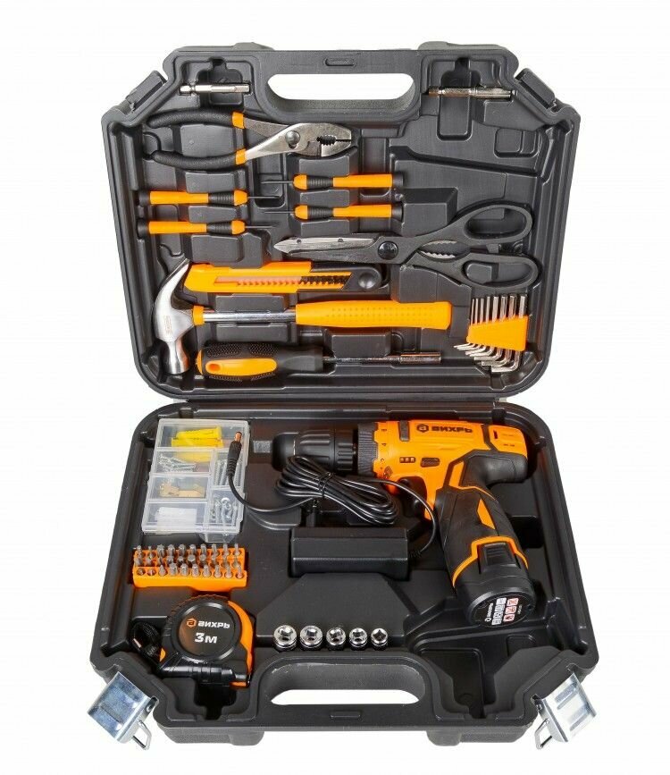 Дрель-шуруповерт аккумуляторная Вихрь ДА-12Л-2КН с набором инструментов