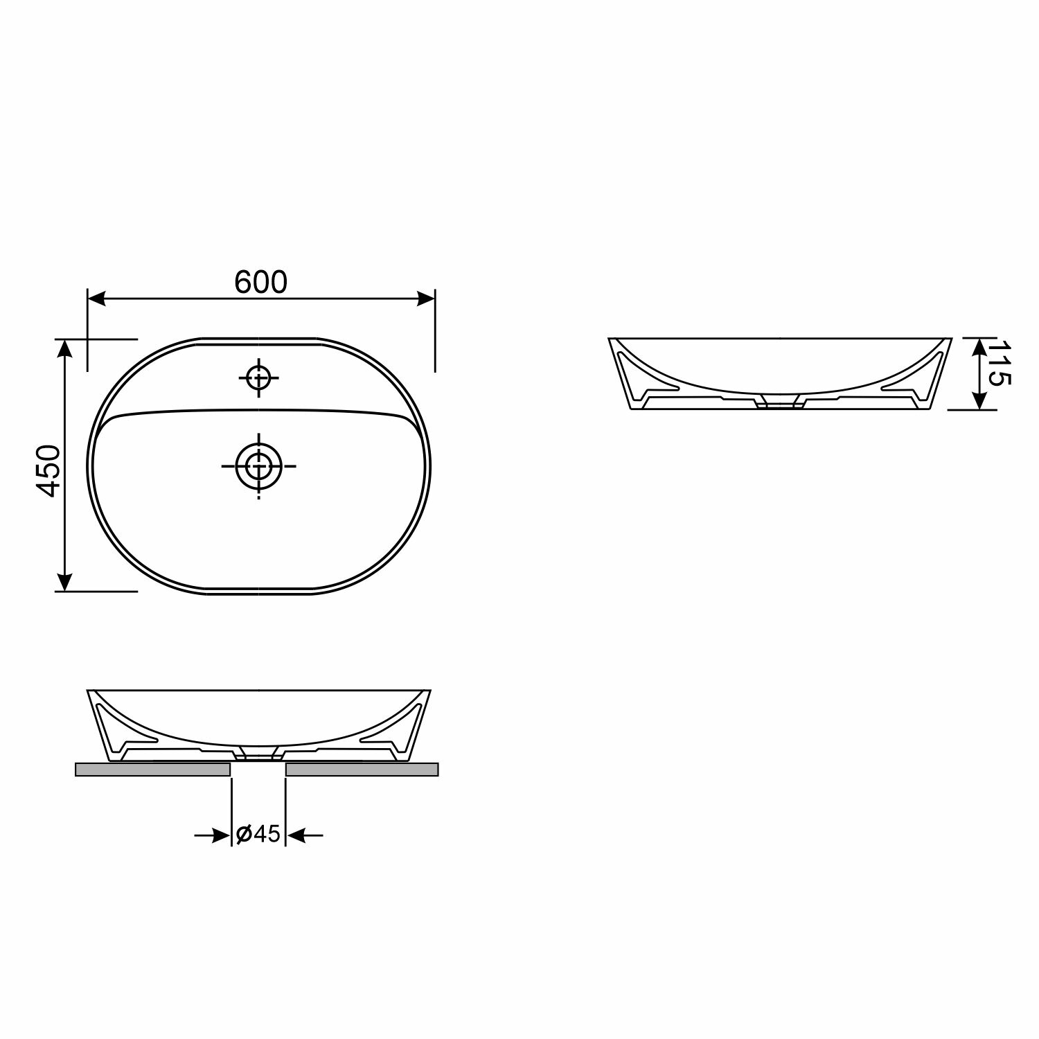 | Диаметр сливного отверстия | 45 мм |
