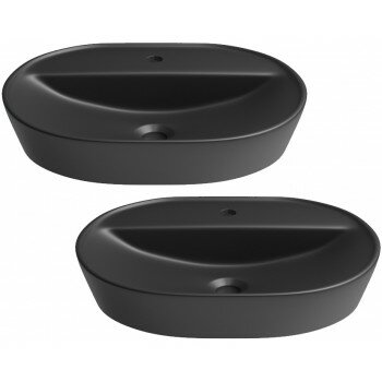 Купить Накладная раковина для ванной Wellsee Calin 150202001 в наборе 2 в 1: раковины 2 шт, ширина одного умывальника 60 см, цвет матовый черный