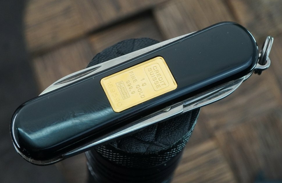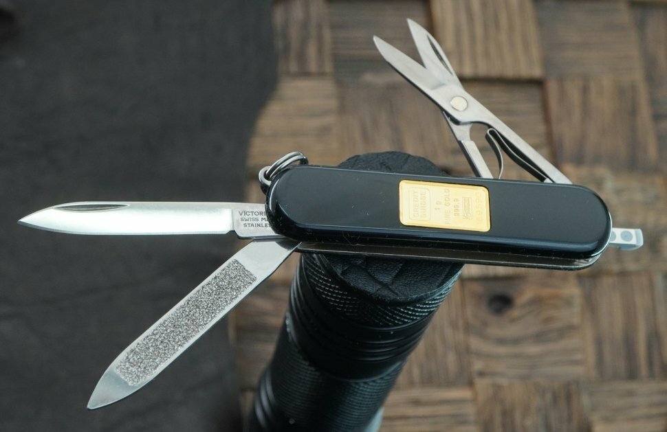 Нож перочинный Victorinox Classic 0.6203.87 с золотым слитком 1гр 58мм 7 функций черный
