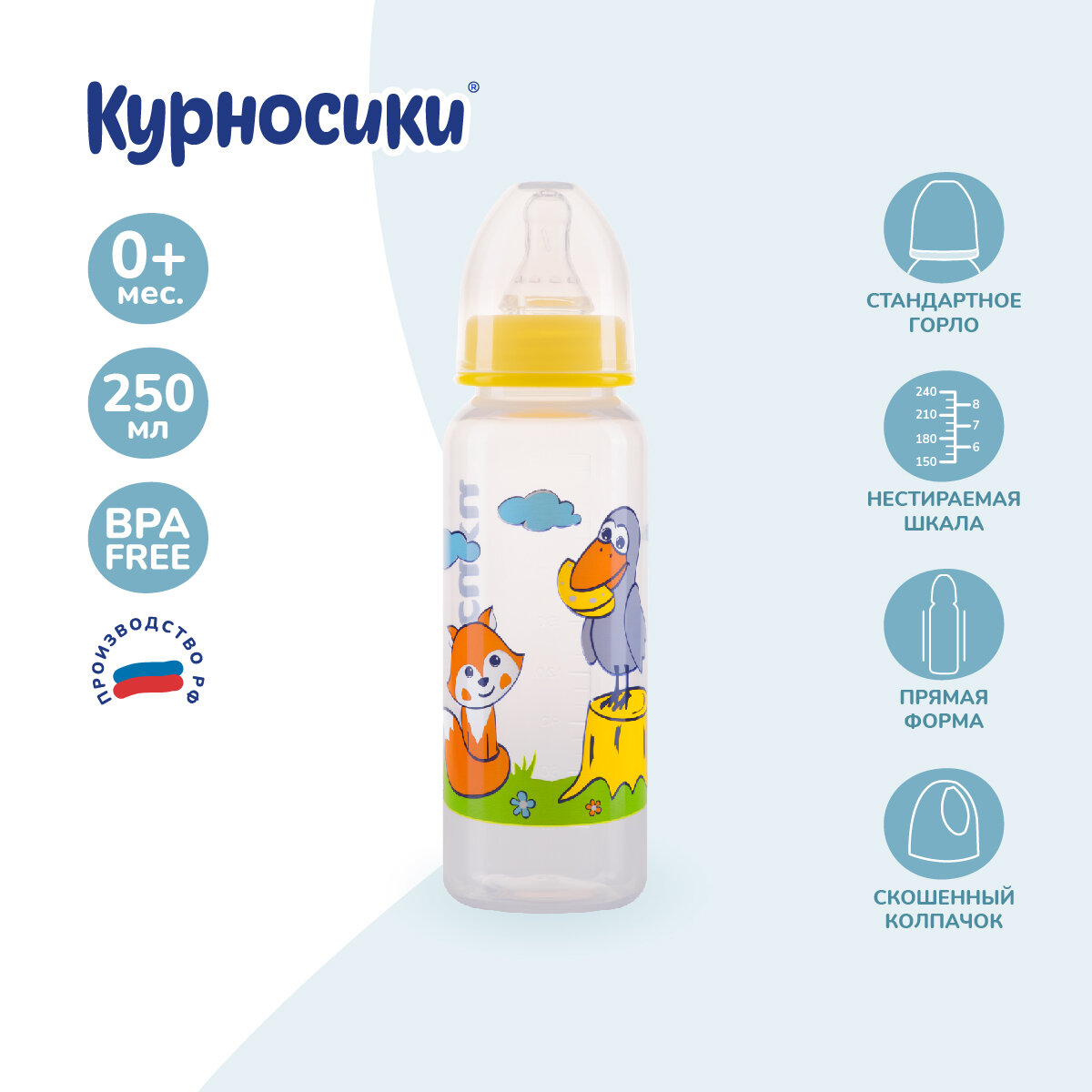 Купить Бутылочка для кормления Курносики с силиконовой соской, 250 мл., 0+ мес.