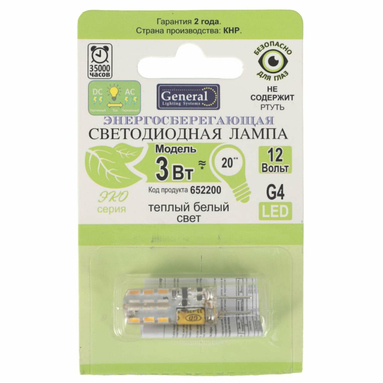 Лампа светодиодная GENERAL ECO G4 3W 12V 2700K 105 Лм, силикон