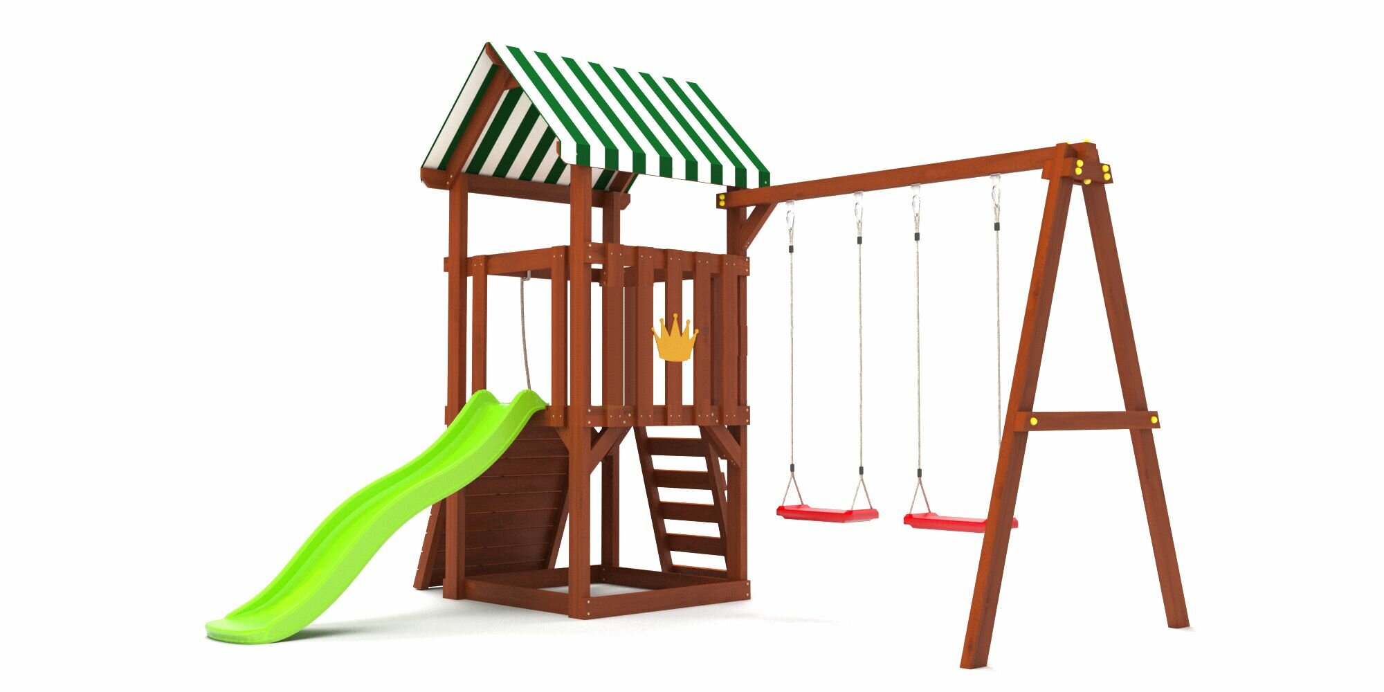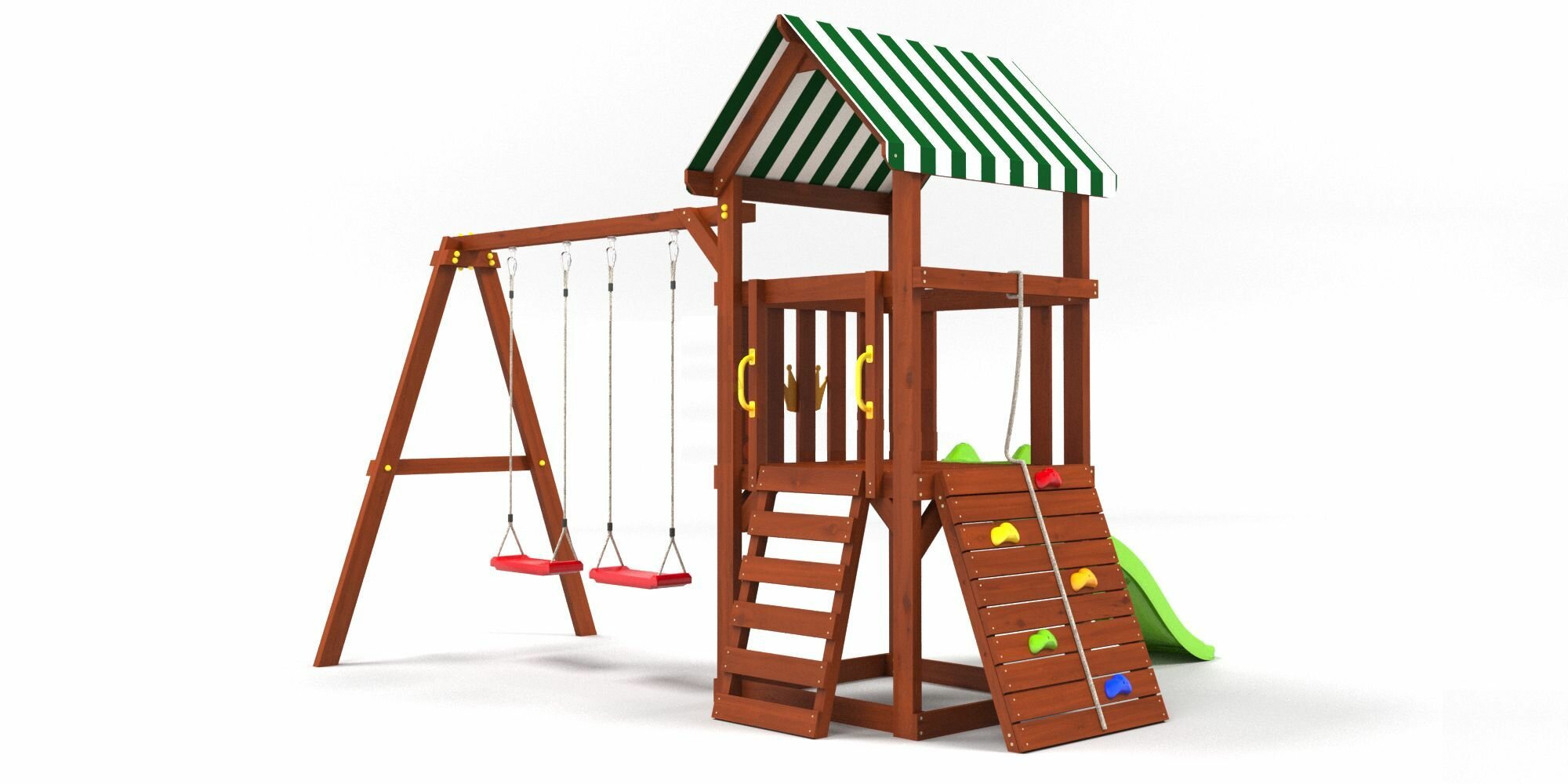 | В комплекте | горка, домик, канат, качели, лестница, скалолазная стенка |