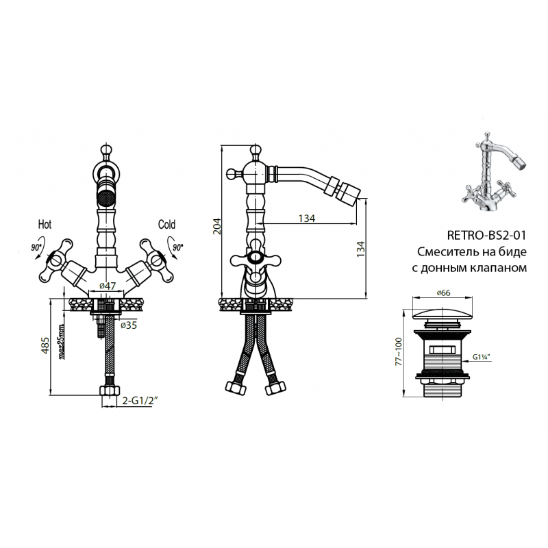 Смеситель для биде Cezares Retro RETRO-BS2-01 (RETRO-C-BS2-01)