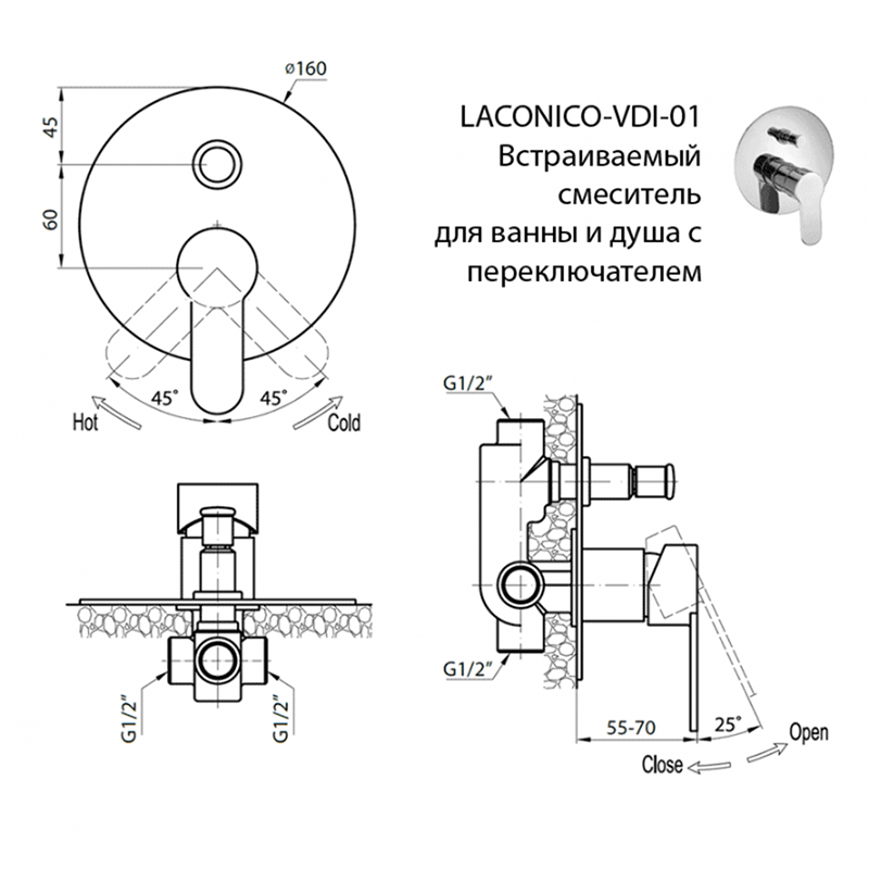 Смеситель для встраиваемых систем Cezares LACONICO C VDI BLC