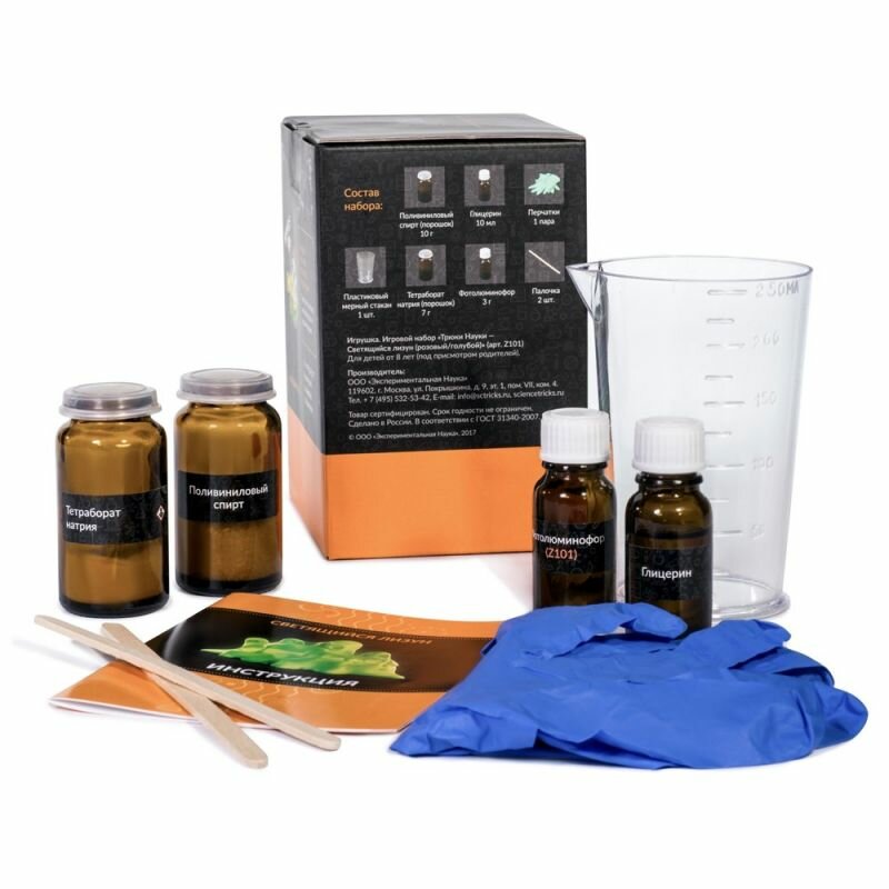 Набор химических экспериментов для детей "Светящийся Лизун" трюки науки