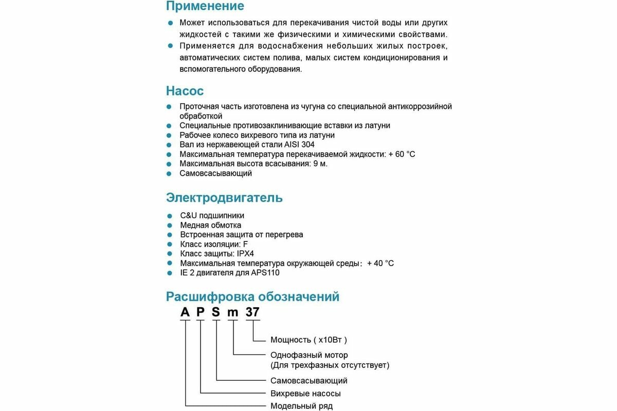 LEO Вихревой насос самовсасывающий APSm 37, 370 Вт, 220В, Qmax. 1,8 m3h, Hmax. 40 m 26 интересное:
