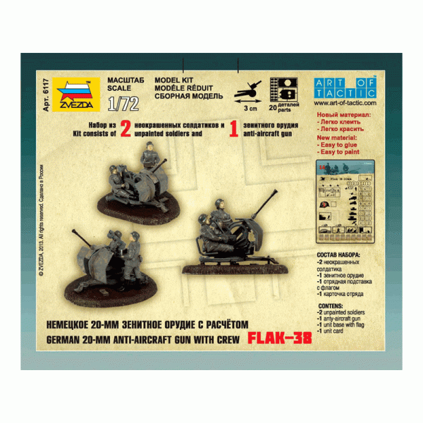 Сборная модель ZVEZDA "Немецкое 20-мм зенитное орудие с расчетом Flak-38"