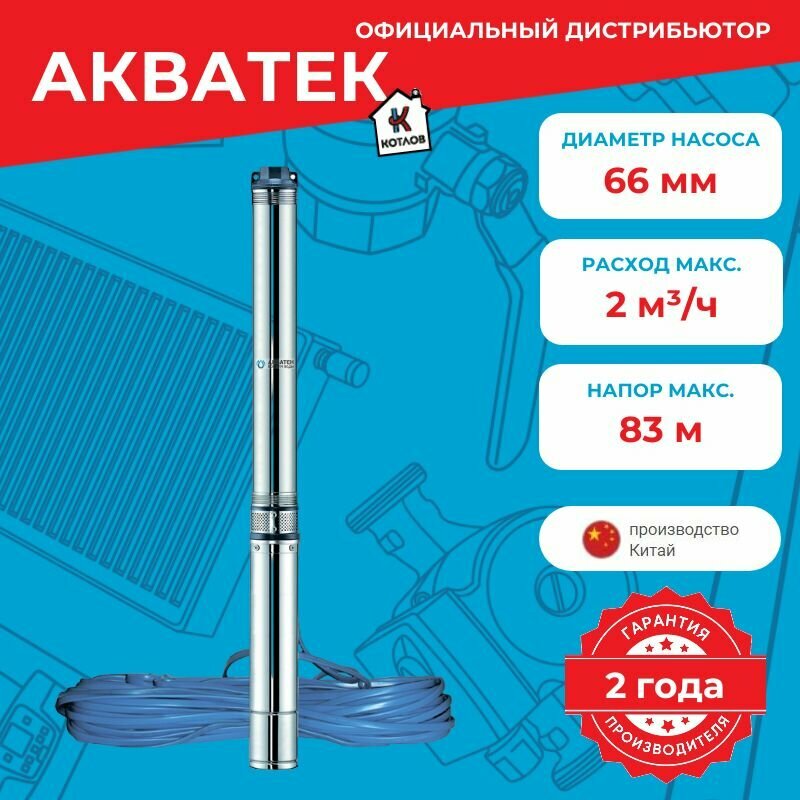 Насос скважинный Акватек SP 2,5" 2-80 с кабелем 45 м, 550Вт, тип 2, Акватек Все для Воды 0-18-0701 интересное: