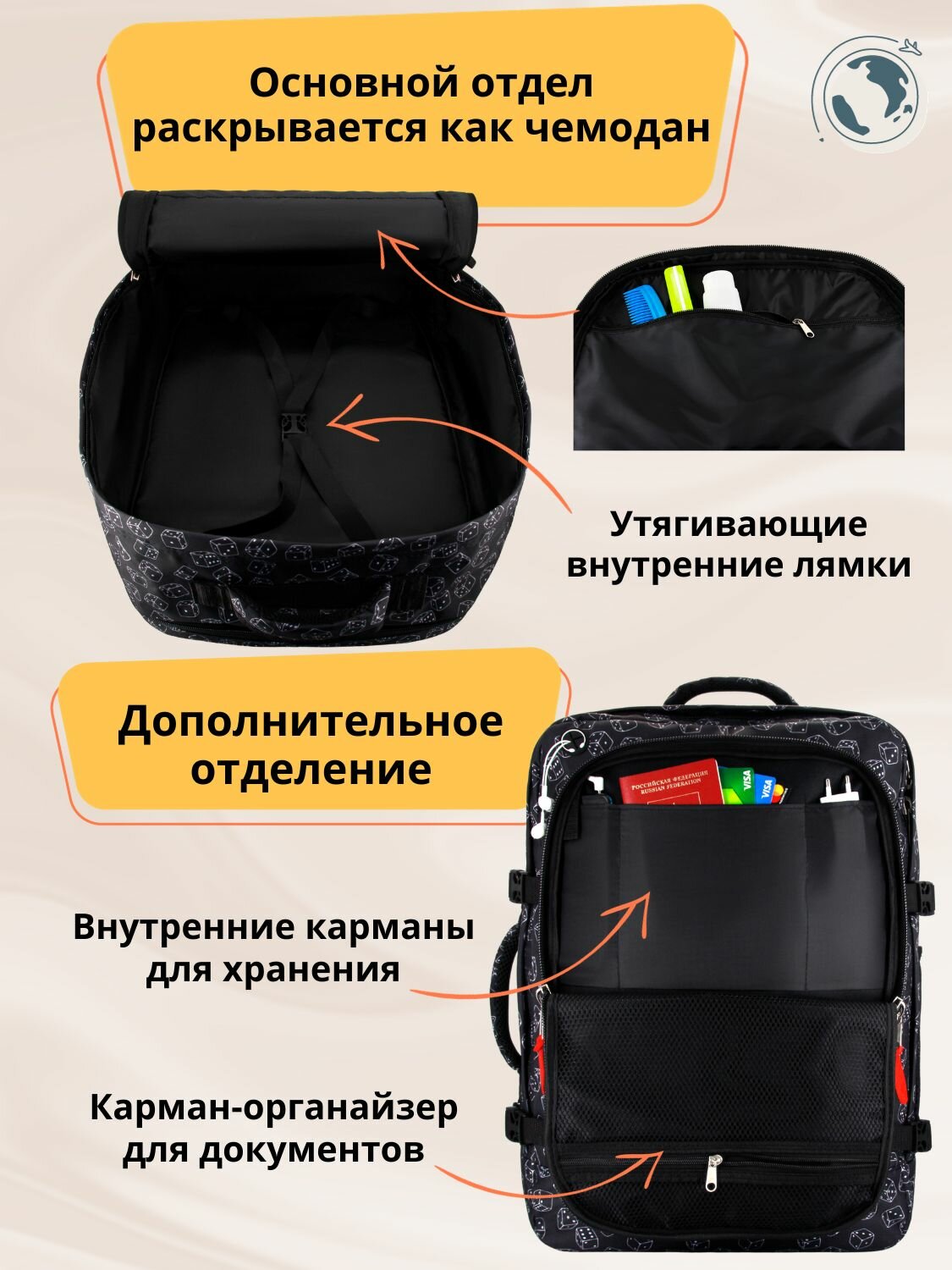 Купить Рюкзак сумка чемодан ручная кладь S в самолет дорожная 44 л, кости