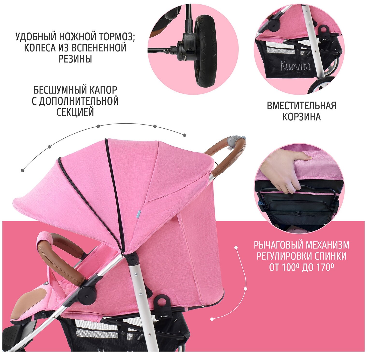 СохранитьПрогулочная коляска Nuovita Corso (Rosa, Argento / Розовый, Серебристый) интересное: