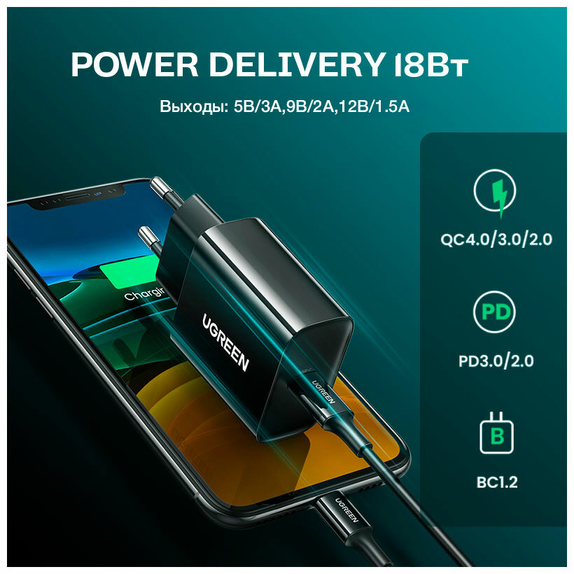 СохранитьЗарядное устройство UGREEN CD137 (10191) Fast Charger EU. Цвет: черный интересное: