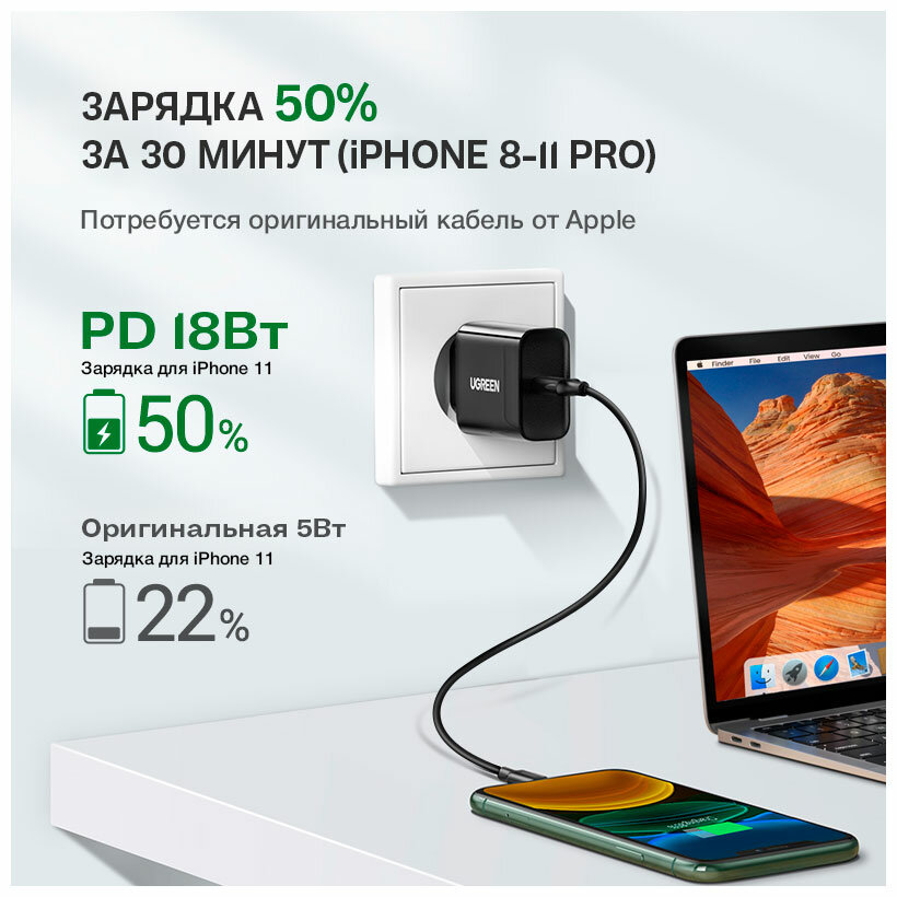 Сетевое з/у Ugreen CD137 (10191) Fast Charging 20W, черный (10191_) .