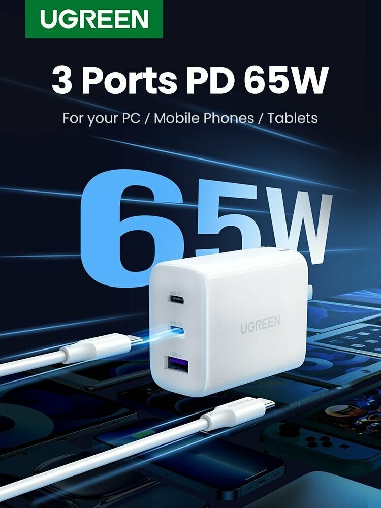 Ниже Вы можете прочитать отзывы на Зарядное устройство Ugreen CD275 USB-A + 2xUSB-C 65W 90496, ознакомится с подробными характеристиками, посмотреть интересные обзоры и фотографии на Зарядное устройство Ugreen CD275 USB-A + 2xUSB-C 65W 90496.