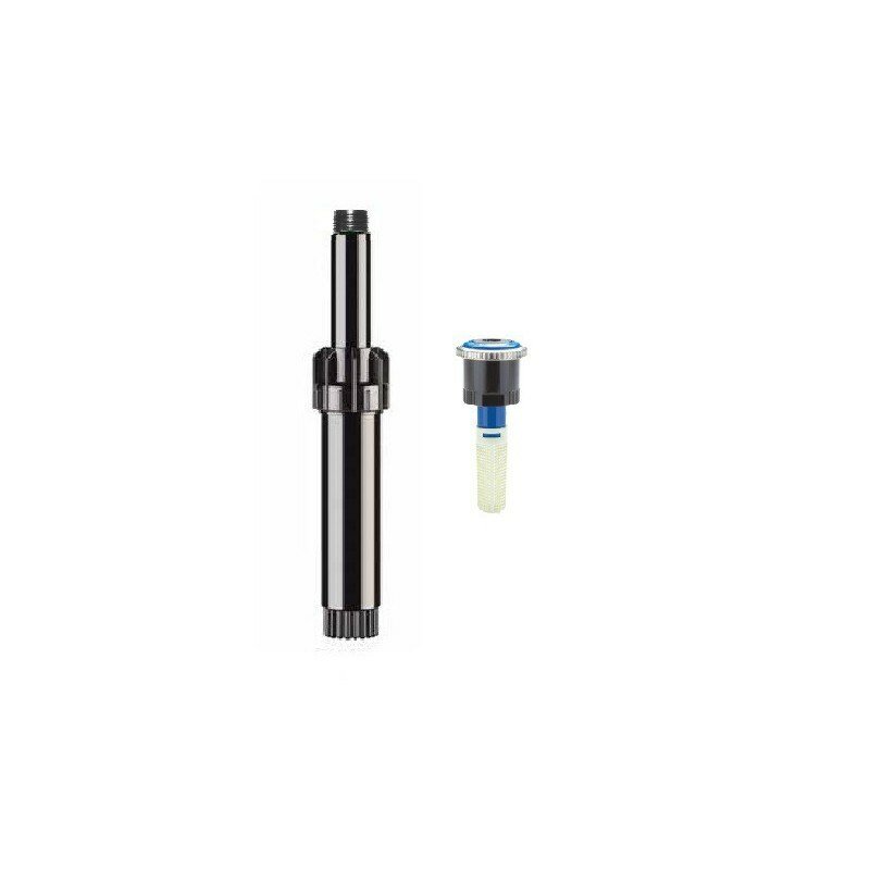 | Дополнительная информация | общая высота дождевателя 19 см; диаметр поверхностной части 3 см; регулируемый сектор полива 90°–210°; радиус полива 7.6 - 9.1 м; поток 2.63 - 9.37 л/мин; давление 1.7 - 3.8 бар; рекомендуемое давление 2.8 бар (радиус полива 9.1 м) |