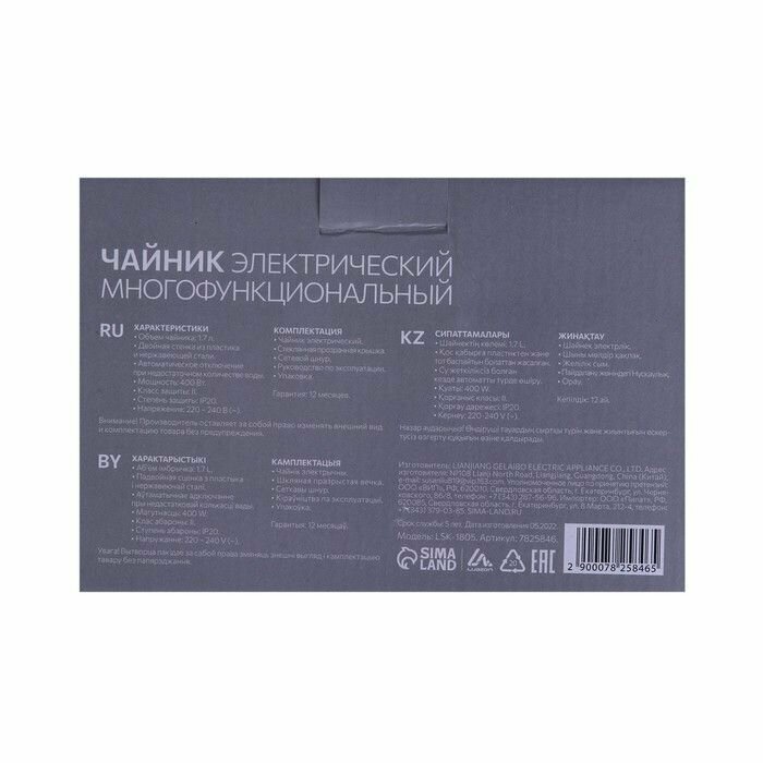 Luazon Home Чайник-кастрюля электрический LuazON LSK-1805, пластик, 1.7 л, 400 Вт, интересное: