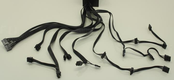Куча разных защит,сертификат 80 Gold,проводов более чем достаточно, шлейфы плоские,разместились свободно. |