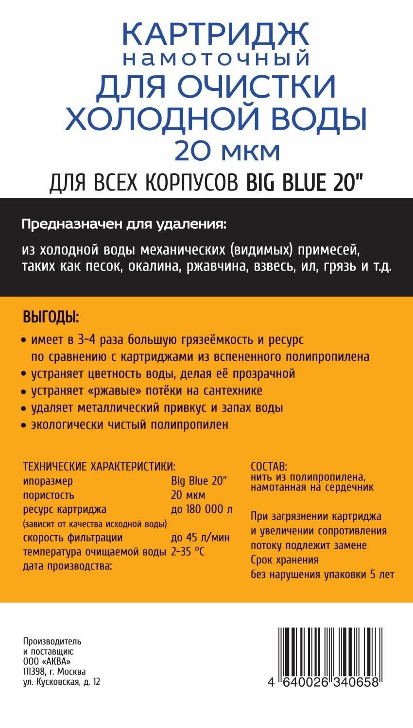 Картридж Аква Про 10ВВ для холодной воды 20 мкм , 767