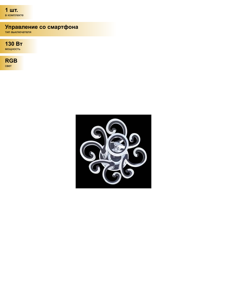 Люстра светодиодная CAMELION LCL-1024 14632 хром, 220В, 130Вт, регулируемая, ИК-пульт, Bluetooth, таймер
