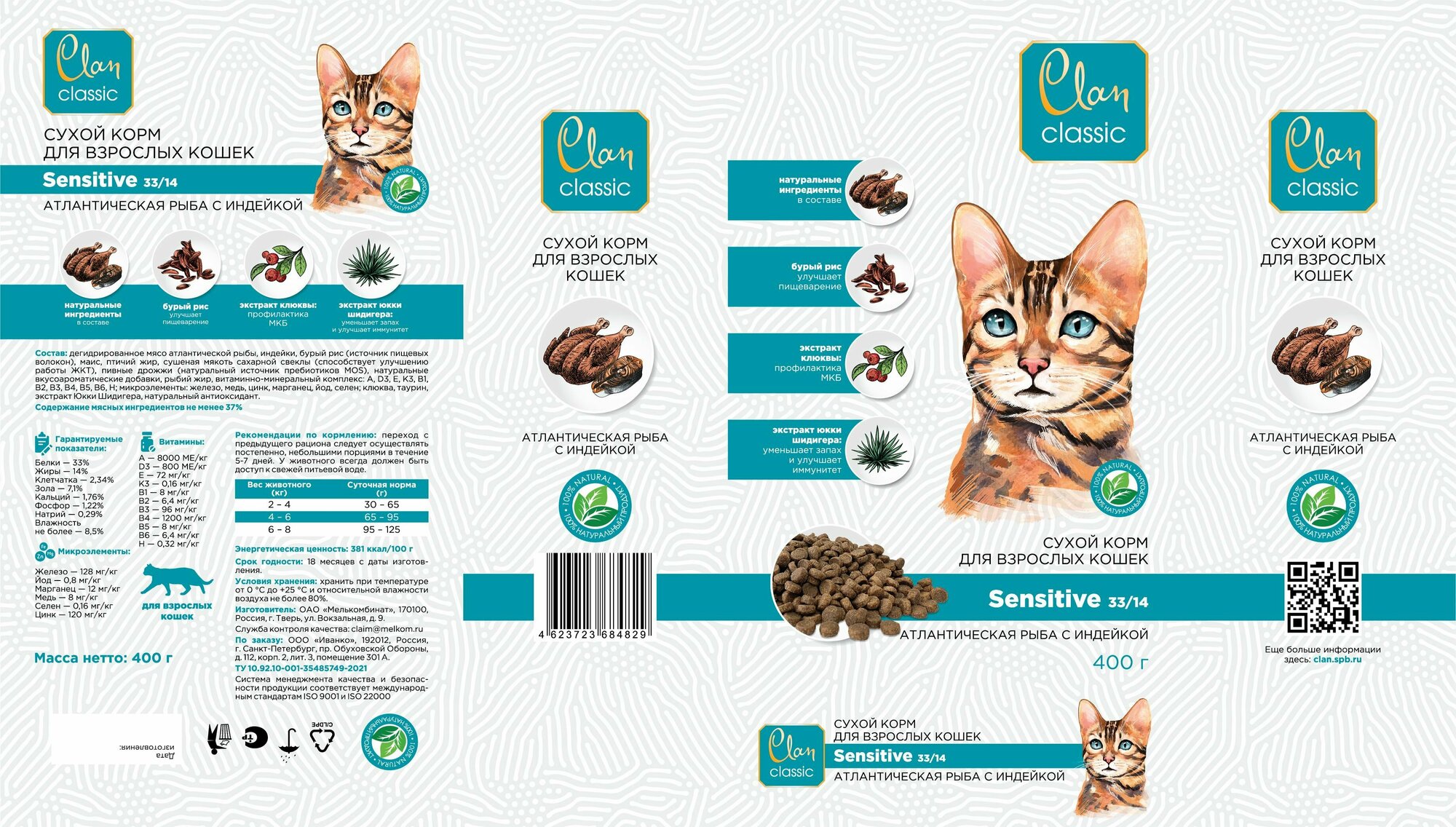 Корм сухой для кошек clan classic sensitive атлантическая рыба и индейка, 400г