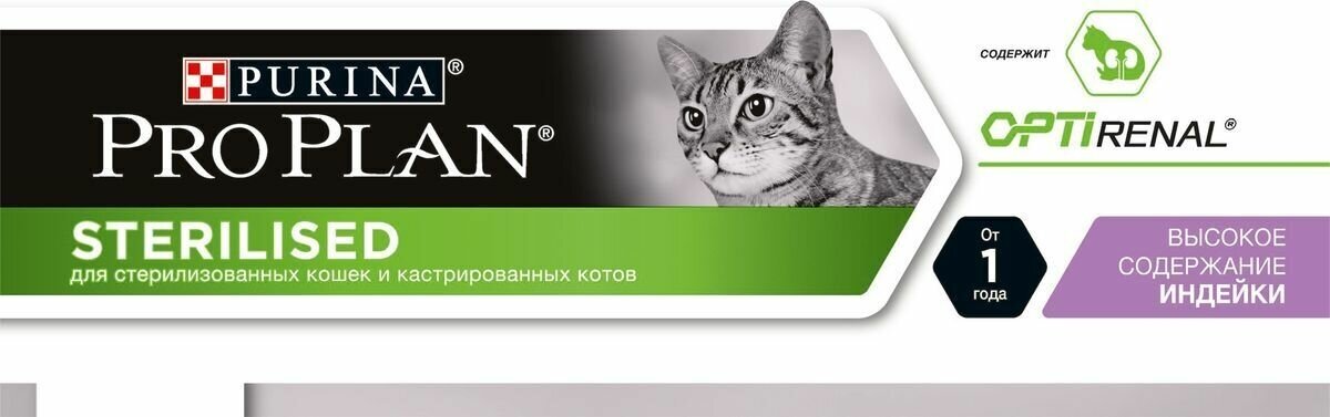 Pro Plan Sterilised OptiRenal Сухой корм для стерил. взр. кошек, с индейкой 1,9кг (1,5кг+400г)