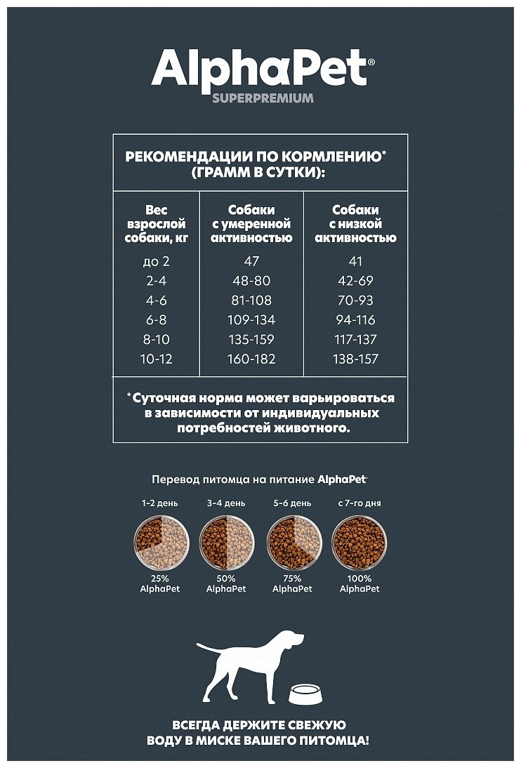 AlphaPet Superpremium сухой полнорационный корм для взрослых собак мелких пород с индейкой и рисом - 500 г