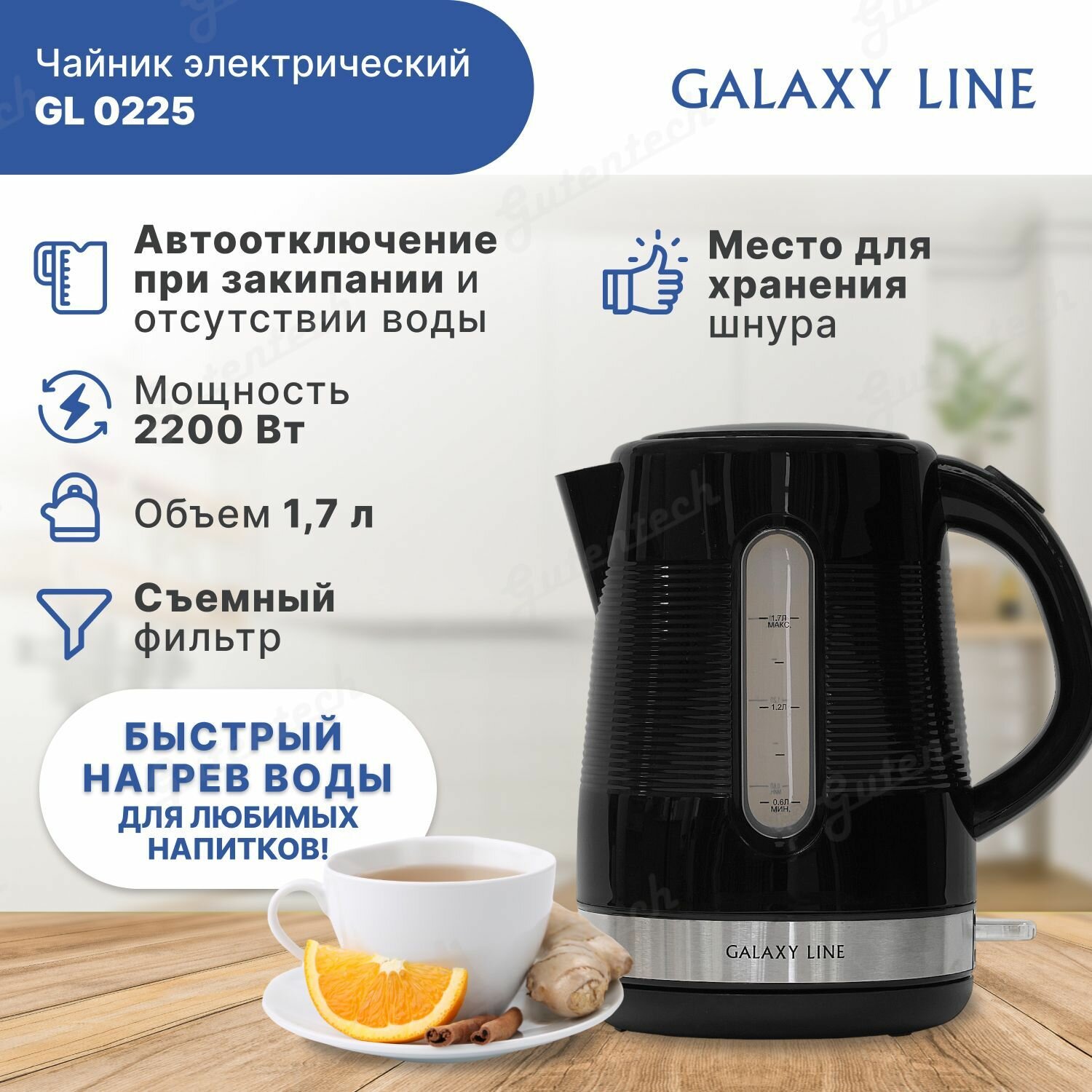 Чайник Galaxy LINE GL 0225 черный