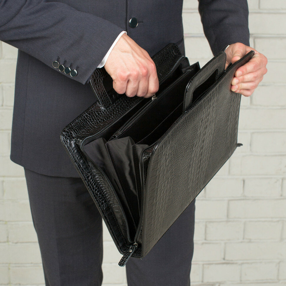 Кожаная папка с выдвижными ручками Lakestone Elton Black