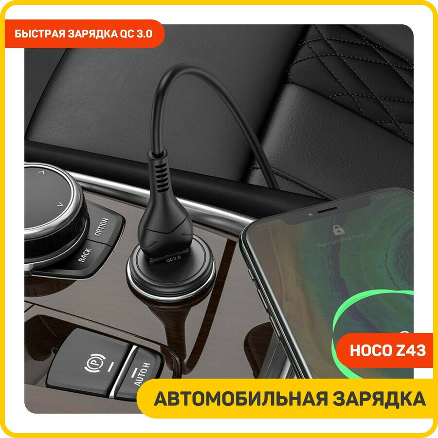 Автомобильное зарядное устройство (АЗУ) Hoco Z43 QC 3.0 (USB) + кабель Type-C, 3 А, черный интересное: