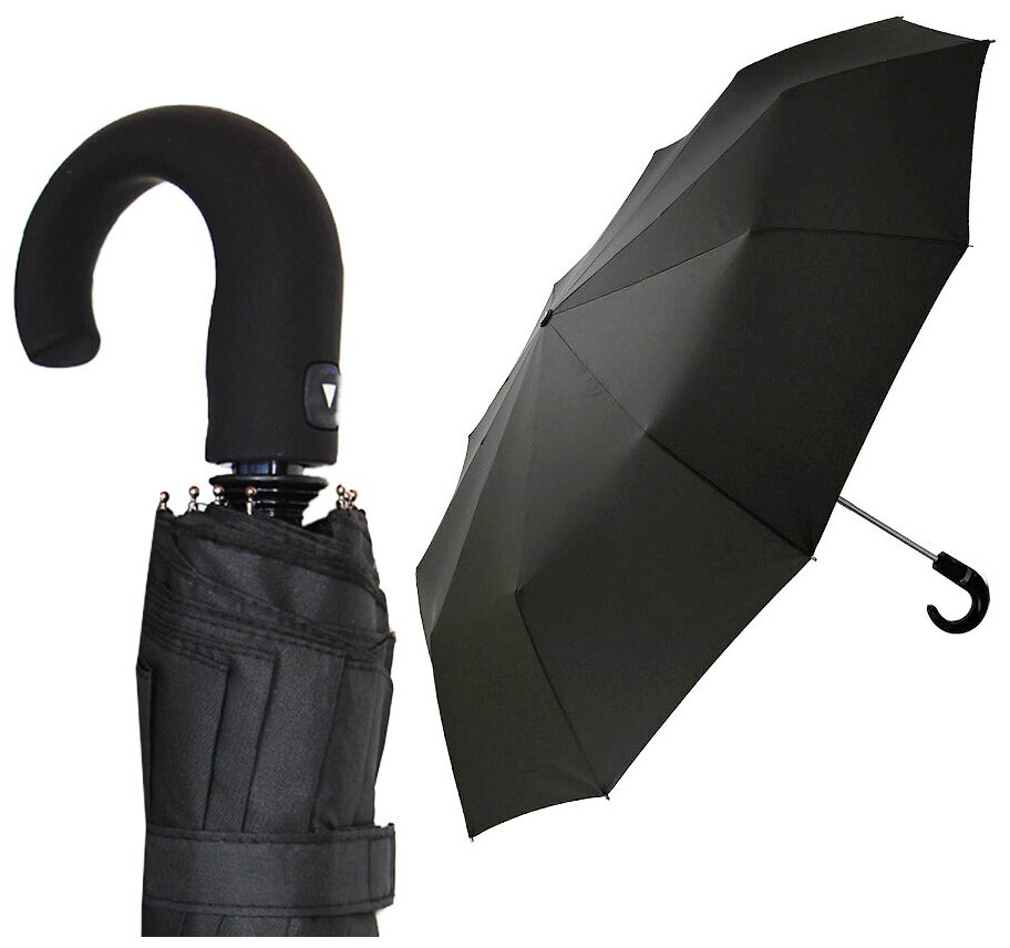 Зонт Rainbrella, полуавтомат, 3 сложения, купол 97 см., 8 спиц, система «антиветер», чехол в комплекте, для мужчин, черный интересное: