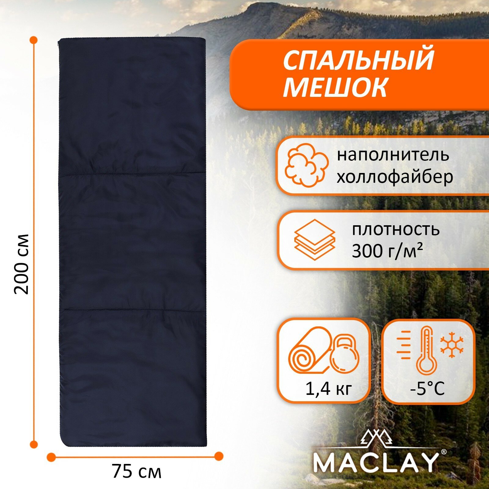 Спальный мешок Maclay, 200х75 см, до -5 °С